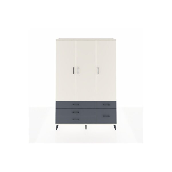 Arges Dolap 5 Raflı 5 Çekmeceli Tek Askılı 132x30x195 Aytaşı-Aytaşı/Antrasit