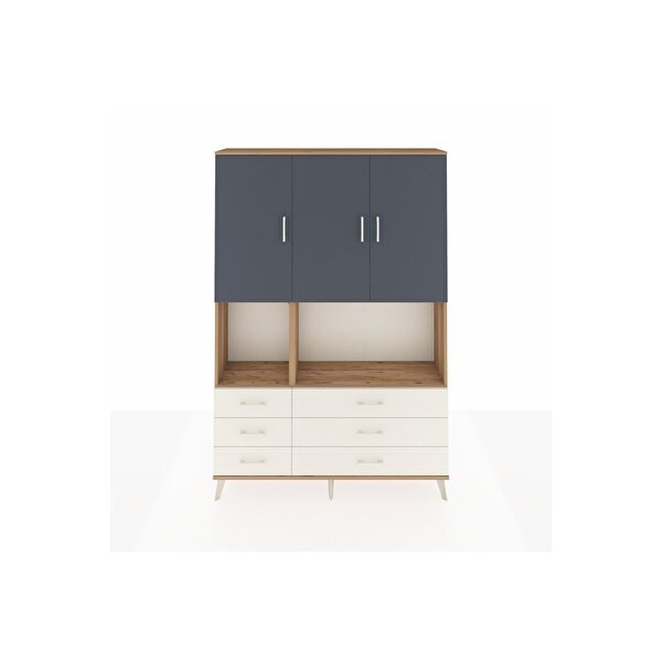 Arges Dolap 6 Raflı 6 Çekmeceli 3 Kapaklı 132x30x195 Çam-antrasit/aytaşı