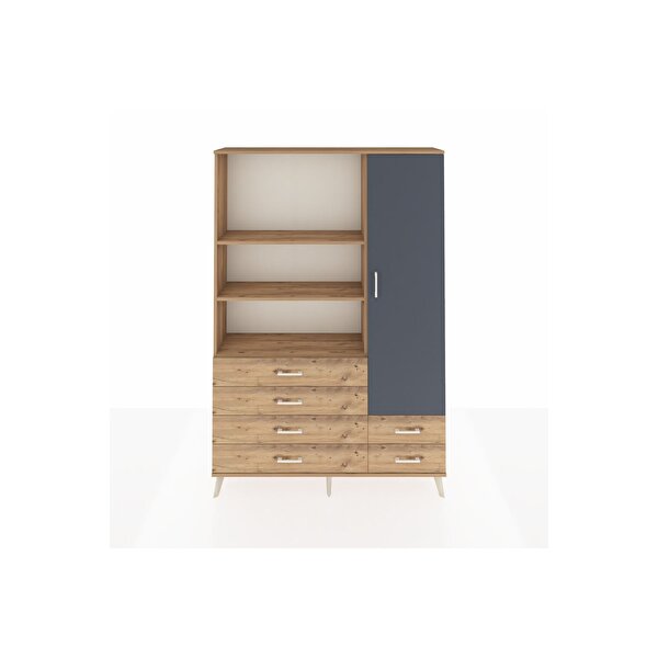 Arges Dolap 7 Raflı 6 Çekmeceli Tek Kapaklı 132x30x195 Çam-Antrasit/Çam