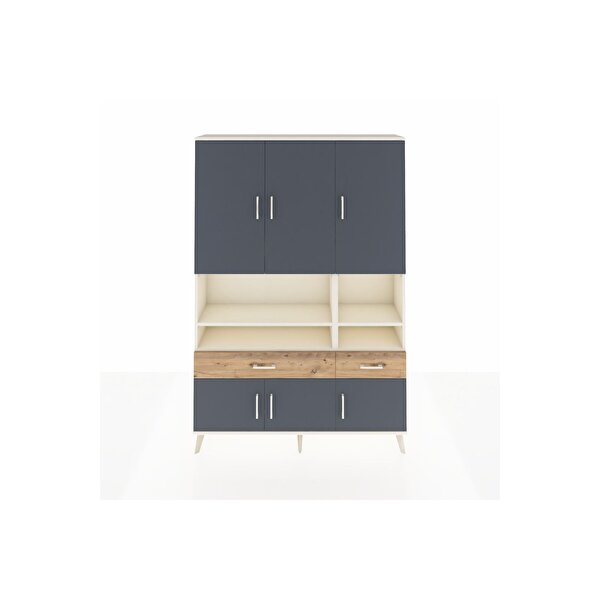 Arges Dolap 8 Raflı 2 Çekmeceli 6 Kapaklı 132x30x195 Aytaşı-antrasit/çam