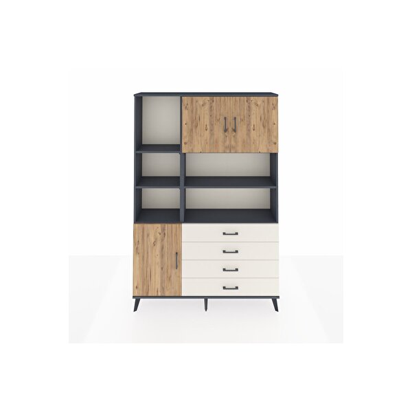 Arges Dolap 8 Raflı 4 Çekmeceli 3 Kapaklı 132x30x195 Antrasit-Çam/Aytaşı