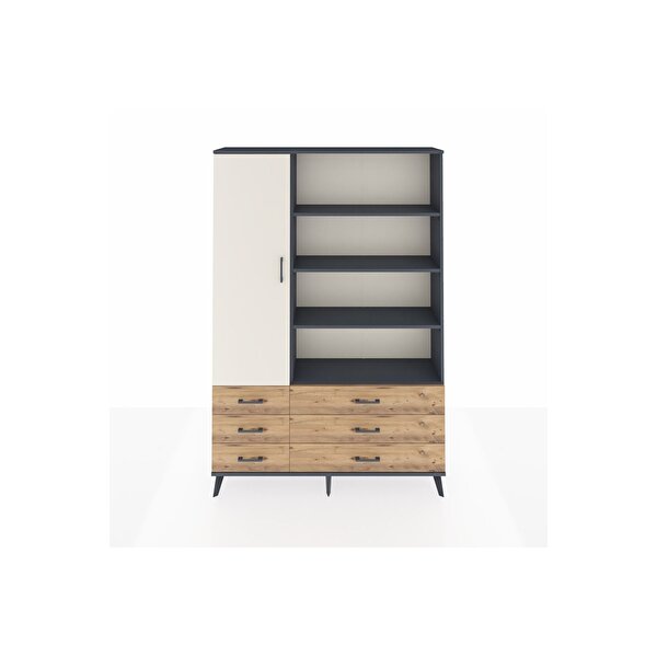Arges Dolap 8 Raflı 6 Çekmeceli Tek Kapaklı 132x30x195 Antrasit-Aytaşı/Çam