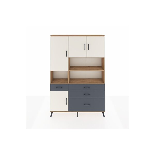 Dienni Mobilya Arges Dolap 9 Raflı 4 Çekmeceli 4 Kapaklı 132x30x195 Çam-aytaşı/antrasit