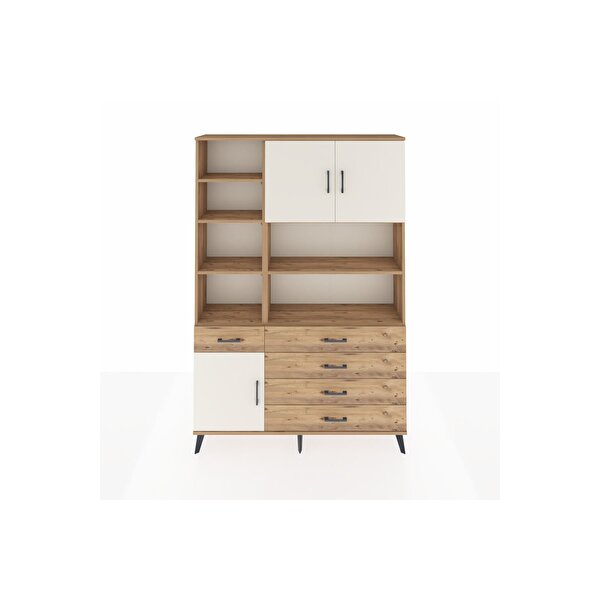 Arges Dolap 9 Raflı 5 Çekmeceli 3 Kapaklı 132x30x195 Çam-aytaşı/çam
