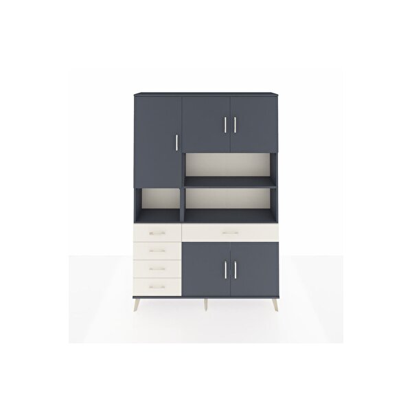 Dienni Mobilya Arges Dolap 9 Raflı 5 Çekmeceli 5 Kapaklı 132x30x195 Antrasit-antrasit/aytaşı