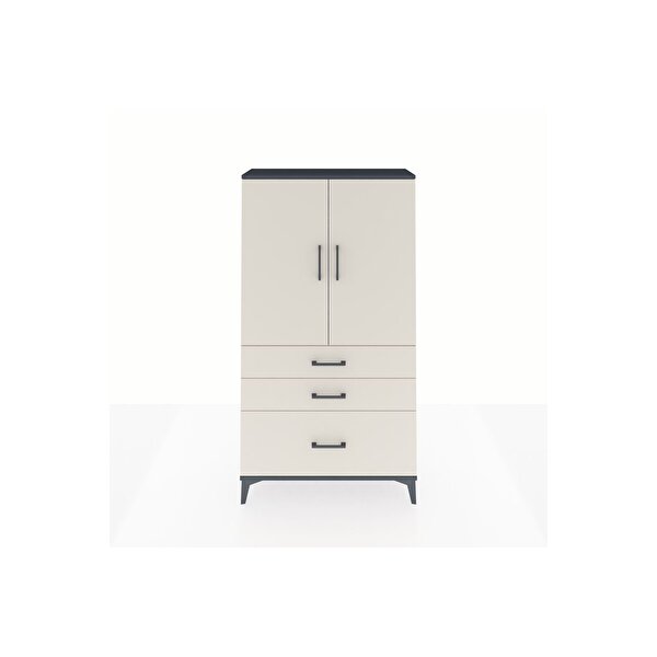 Arges Dolap Tek Raflı 3 Çekmeceli Tek Askılı 88x30x163 Antrasit-Aytaşı
