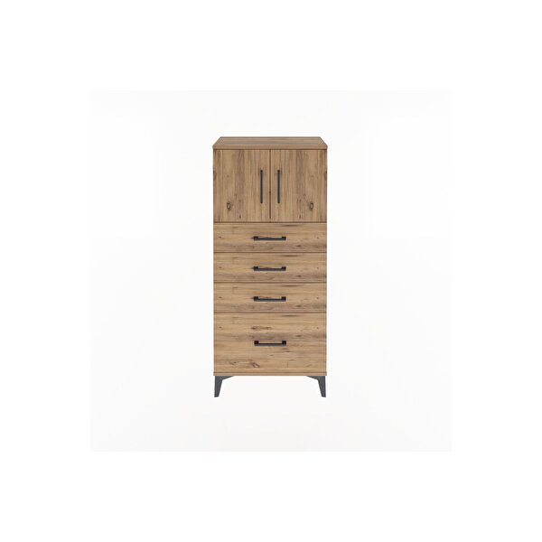Arges Dolap Tek Raflı 4 Çekmeceli 2 Kapaklı 60x30x134 Çam-Çam