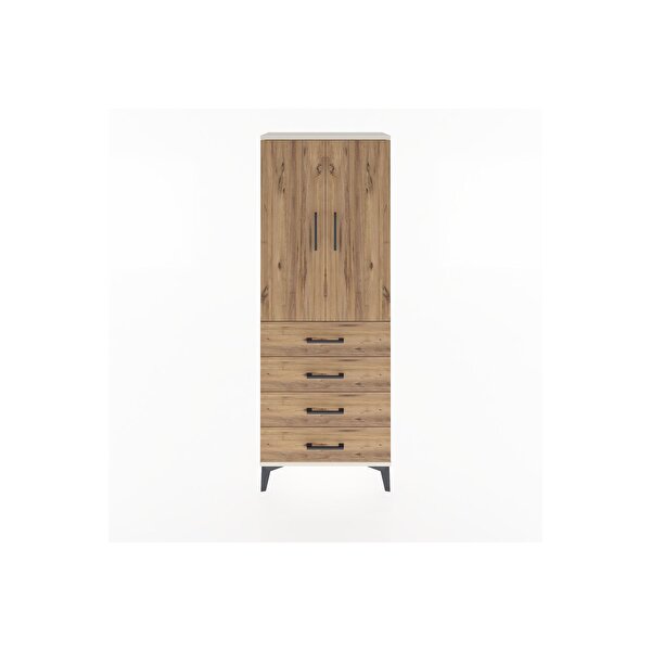 Arges Dolap Tek Raflı 4 Çekmeceli Tek Askılı 60x30x163 Aytaşı-Çam