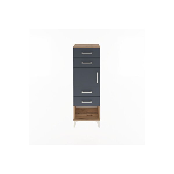 Arges Dolap Tek Raflı 4 Çekmeceli Tek Kapaklı 44x30x134 Çam-Antrasit