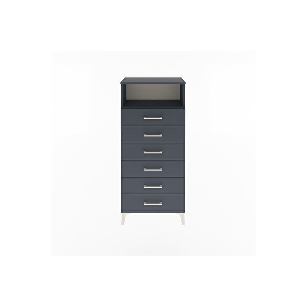Arges Dolap Tek Raflı 6 Çekmeceli 60x30x134 Antrasit-Antrasit