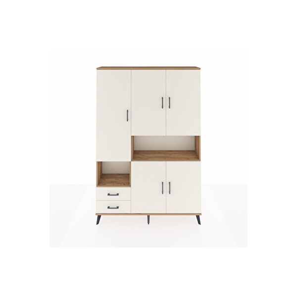 Arges Gardrop 10 Raflı 2 Çekmeceli 5 Kapaklı 132x30x195 Çam-Aytaşı