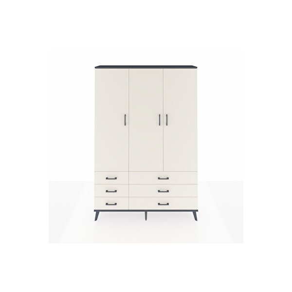 Dienni Mobilya Arges Gardrop 5 Raflı 6 Çekmeceli Tek Askılı 132x30x195 Antrasit-aytaşı