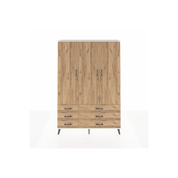 Arges Gardrop 5 Raflı 6 Çekmeceli Tek Askılı 132x30x195 Aytaşı-Çam