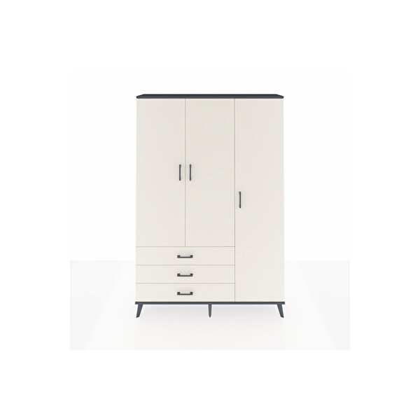 Dienni Mobilya Arges Gardrop 6 Raflı 3 Çekmeceli Tek Askılı 132x30x195 Antrasit-aytaşı