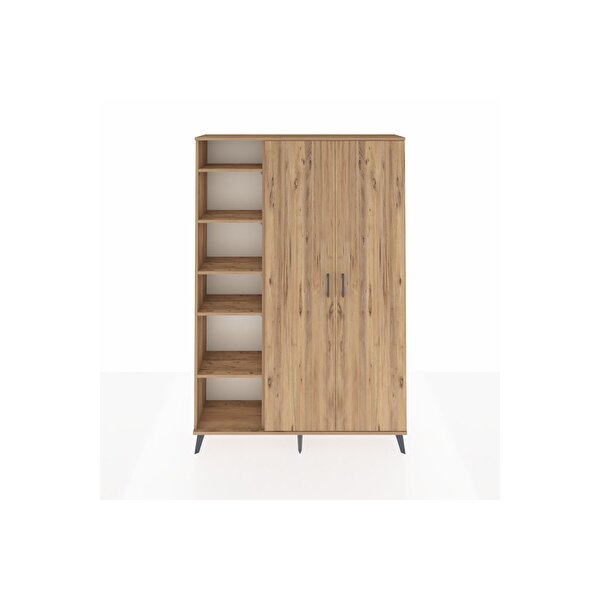 Dienni Mobilya Arges Gardrop 7 Raflı 2 Kapaklı Tek Askılı 132x30x195 Çam-çam