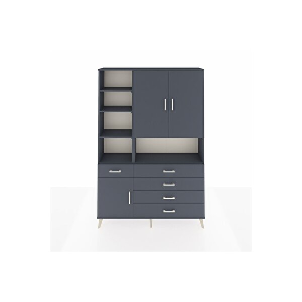 Arges Gardrop 8 Raflı 5 Çekmeceli 3 Kapaklı 132x30x195 Antrasit-Antrasit
