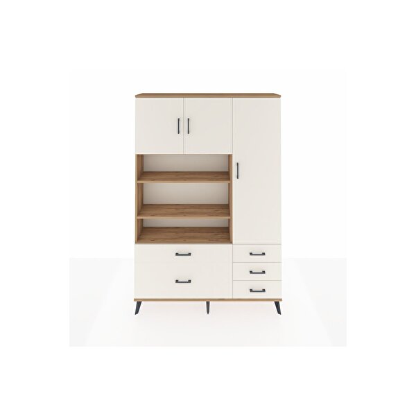 Arges Gardrop 9 Raflı 5 Çekmeceli 3 Kapaklı 132x30x195 Çam-Aytaşı