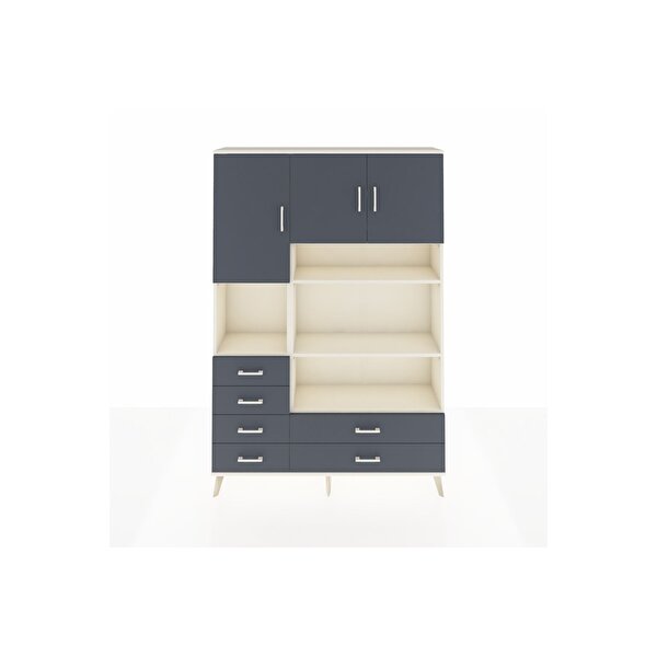 Arges Gardrop 9 Raflı 6 Çekmeceli 3 Kapaklı 132x30x195 Aytaşı-Antrasit