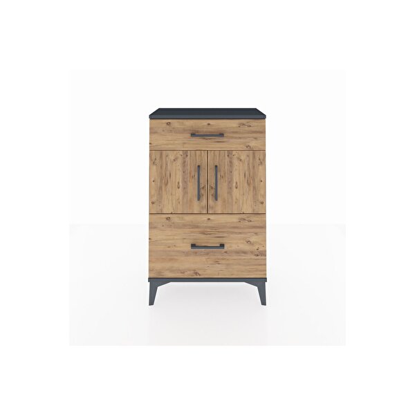 Arges Komodin Tek Raflı 2 Çekmeceli 2 Kapaklı 60x30x96 Antrasit-Çam