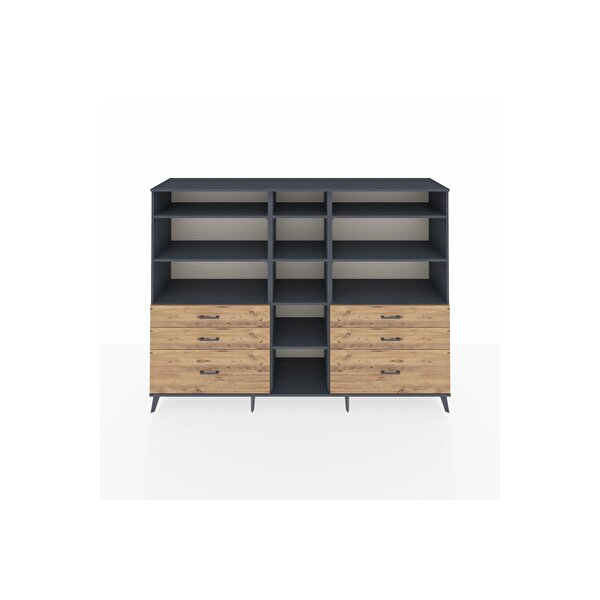 Hyperion Dolap 10 Raflı 6 Çekmeceli 220x44x163 Antrasit-antrasit/çam