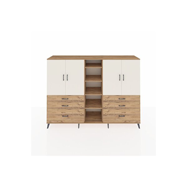 Hyperion Dolap 10 Raflı 6 Çekmeceli 4 Kapaklı 220x44x163 Çam-Aytaşı/Çam