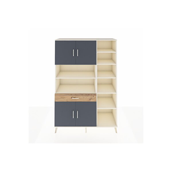 Dienni Mobilya Hyperion Dolap 10 Raflı Tek Çekmeceli 4 Kapaklı 132x44x195 Aytaşı-antrasit/çam