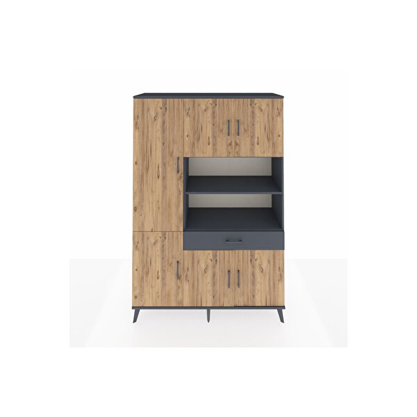 Hyperion Dolap 10 Raflı Tek Çekmeceli 6 Kapaklı 132x44x195 Antrasit-çam/antrasit