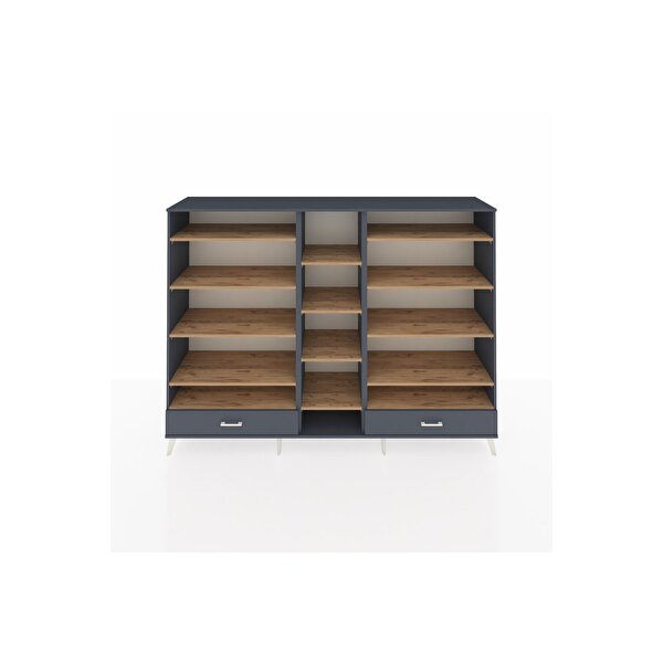 Dienni Mobilya Hyperion Dolap 14 Raflı 2 Çekmeceli 220x44x163 Antrasit-çam/antrasit