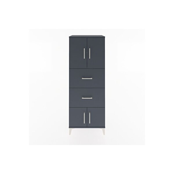 Dienni Mobilya Hyperion Dolap 2 Raflı 2 Çekmeceli 4 Kapaklı 60x44x163 Antrasit-antrasit