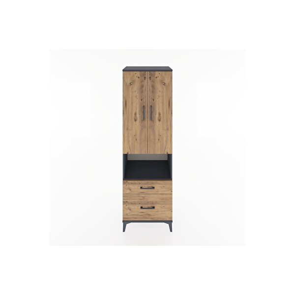 Hyperion Dolap 2 Raflı 2 Çekmeceli Tek Askılı 60x44x195 Antrasit-Çam