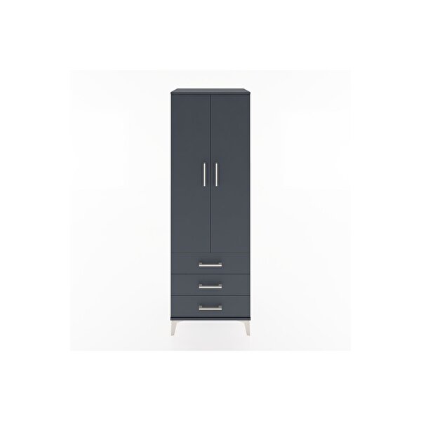 Dienni Mobilya Hyperion Dolap 2 Raflı 3 Çekmeceli 2 Kapaklı 60x44x182 Antrasit-antrasit