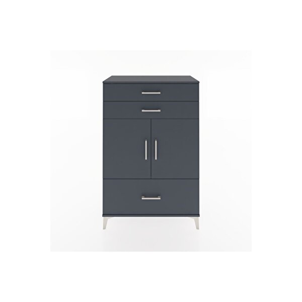 Dienni Mobilya Hyperion Dolap 2 Raflı 3 Çekmeceli 2 Kapaklı 88x44x134 Antrasit-antrasit