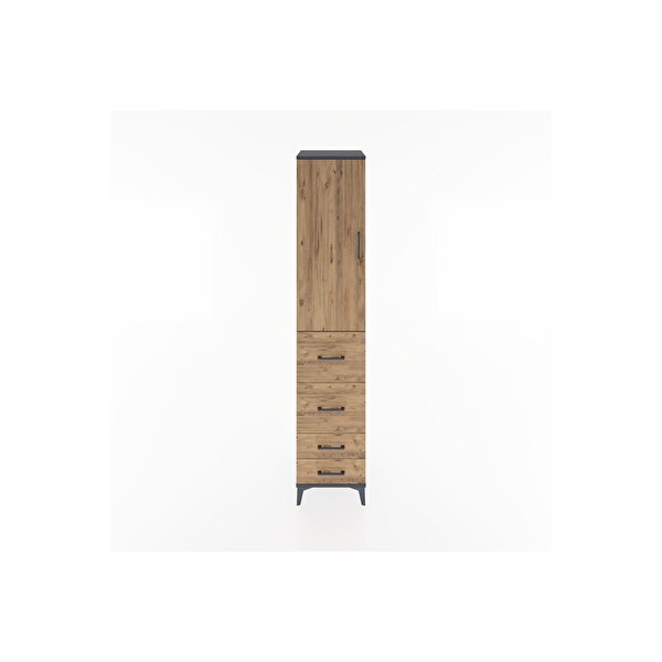 Dienni Mobilya Hyperion Dolap 2 Raflı 4 Çekmeceli Tek Askılı 44x44x221 Antrasit-çam