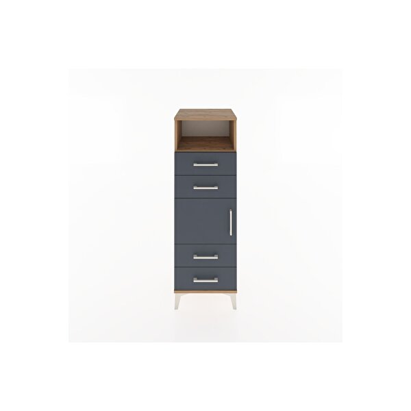 Dienni Mobilya Hyperion Dolap 2 Raflı 4 Çekmeceli Tek Kapaklı 44x44x134 Çam-antrasit