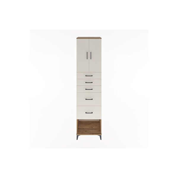 Dienni Mobilya Hyperion Dolap 2 Raflı 5 Çekmeceli 2 Kapaklı 60x44x243 Çam-aytaşı