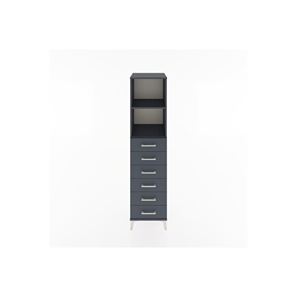 Dienni Mobilya Hyperion Dolap 2 Raflı 6 Çekmeceli 44x44x182 Antrasit-antrasit