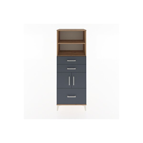 Dienni Mobilya Hyperion Dolap 3 Raflı 3 Çekmeceli 2 Kapaklı 60x44x163 Çam-antrasit