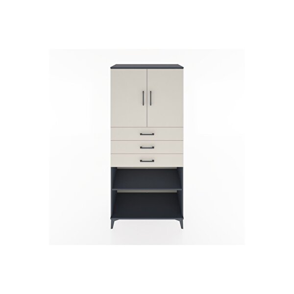Hyperion Dolap 3 Raflı 3 Çekmeceli 2 Kapaklı 88x44x195 Antrasit-aytaşı