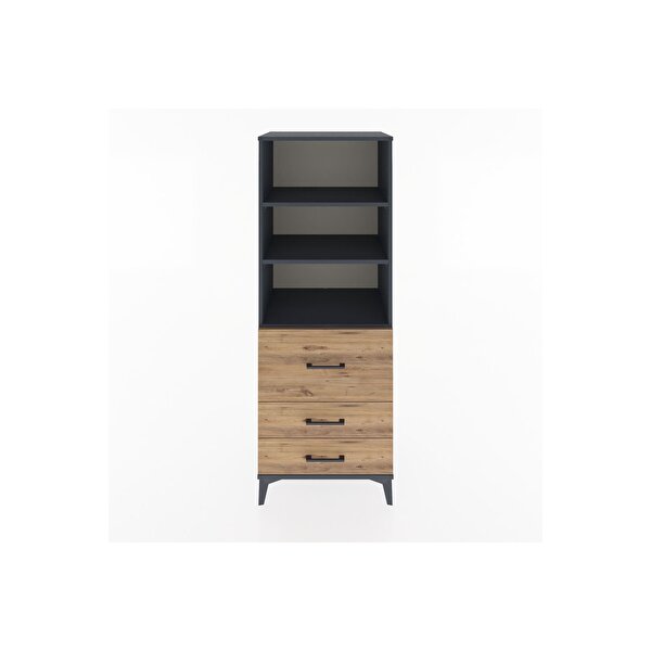 Hyperion Dolap 3 Raflı 3 Çekmeceli 60x44x163 Antrasit-Çam