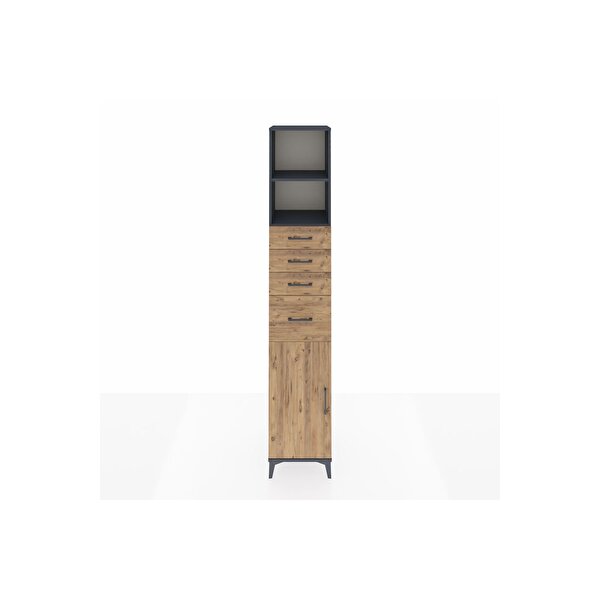 Dienni Mobilya Hyperion Dolap 3 Raflı 4 Çekmeceli Tek Kapaklı 44x44x243 Antrasit-çam