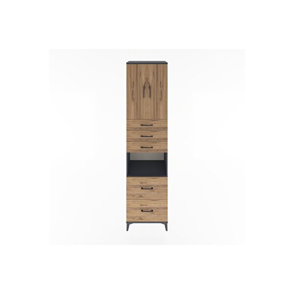 Hyperion Dolap 3 Raflı 5 Çekmeceli 2 Kapaklı 60x44x243 Antrasit-Çam