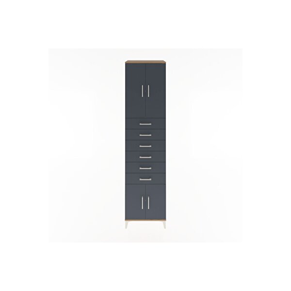 Hyperion Dolap 3 Raflı 6 Çekmeceli 4 Kapaklı 60x44x243 Çam-Antrasit