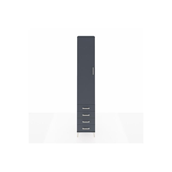 Dienni Mobilya Hyperion Dolap 5 Raflı 4 Çekmeceli Tek Kapaklı 44x44x243 Antrasit-antrasit