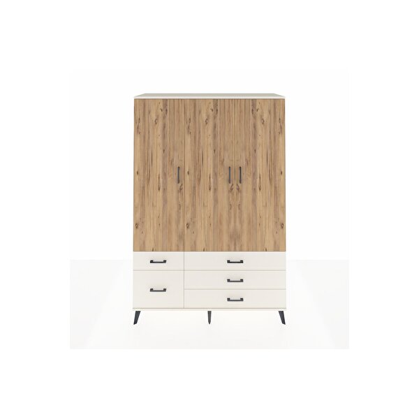 Hyperion Dolap 5 Raflı 5 Çekmeceli Tek Askılı 132x44x195 Aytaşı-Çam/Aytaşı
