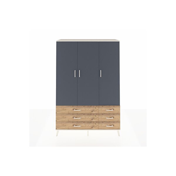 Hyperion Dolap 5 Raflı 6 Çekmeceli Tek Askılı 132x44x195 Aytaşı-antrasit/çam