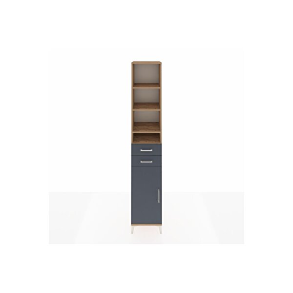 Dienni Mobilya Hyperion Dolap 6 Raflı 2 Çekmeceli Tek Kapaklı 44x44x243 Çam-antrasit