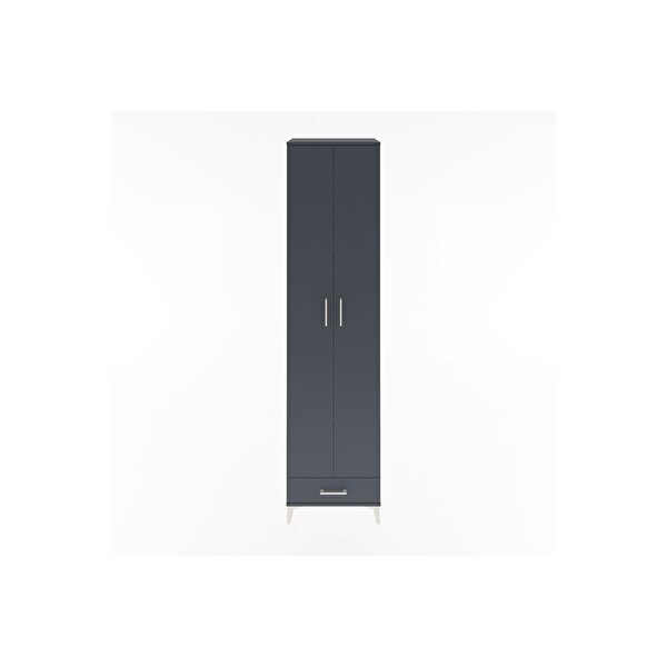 Dienni Mobilya Hyperion Dolap 6 Raflı Tek Çekmeceli 2 Kapaklı 60x44x243 Antrasit-antrasit