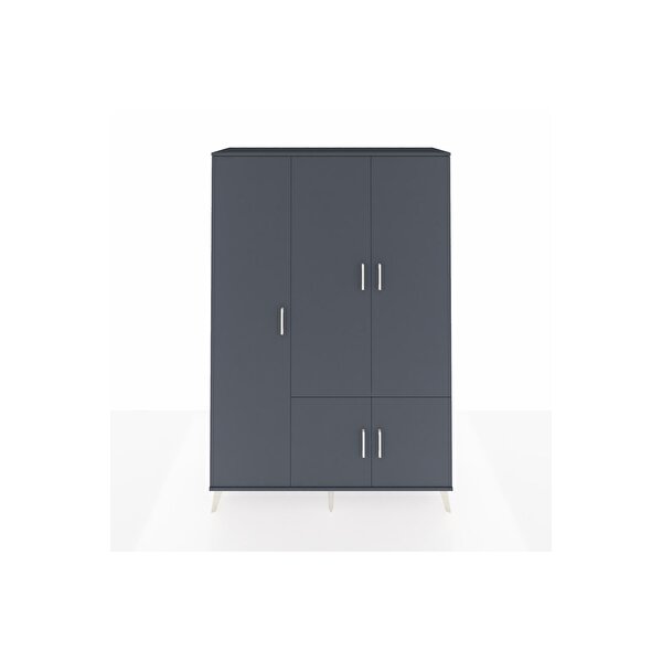 Dienni Mobilya Hyperion Dolap 7 Raflı 5 Kapaklı Tek Askılı 132x44x195 Antrasit-antrasit/aytaşı