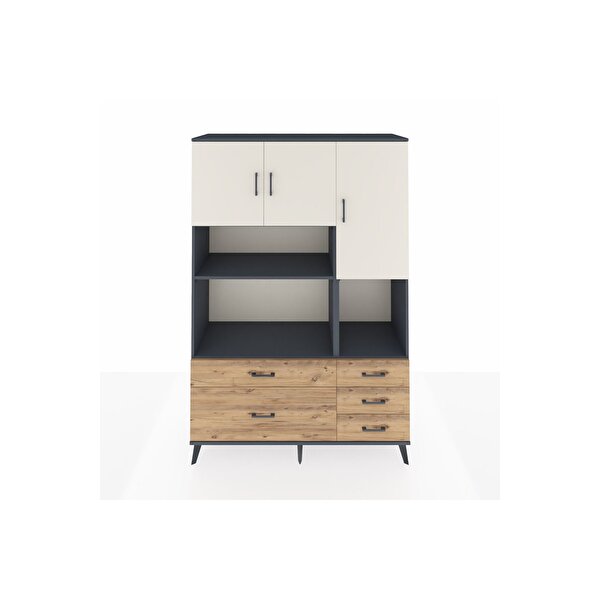 Hyperion Dolap 8 Raflı 5 Çekmeceli 3 Kapaklı 132x44x195 Antrasit-aytaşı/çam