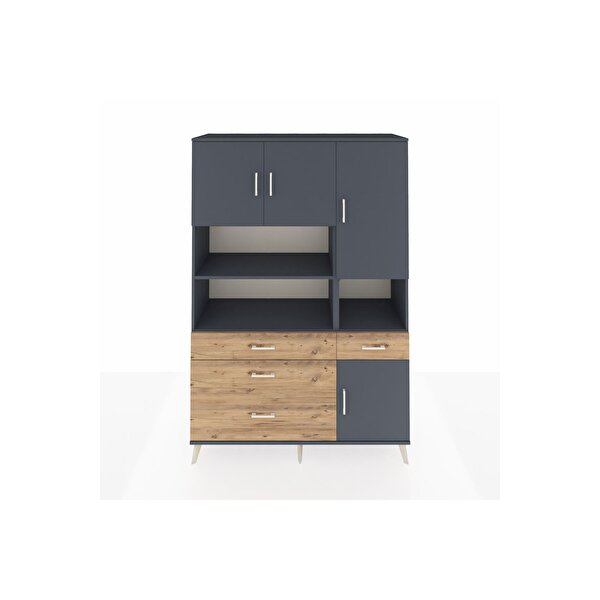 Hyperion Dolap 9 Raflı 4 Çekmeceli 4 Kapaklı 132x44x195 Antrasit-Antrasit/Çam